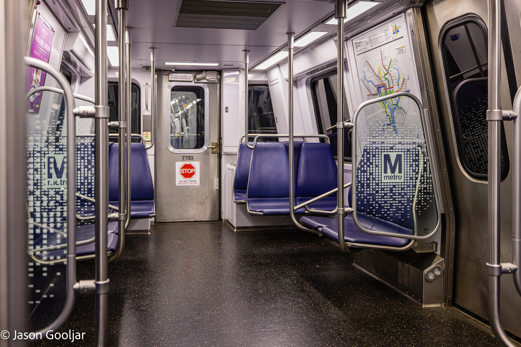 WMATA 7000 railcar. The 8000 series is expected in 2028 but will look somewhat similar to this design.