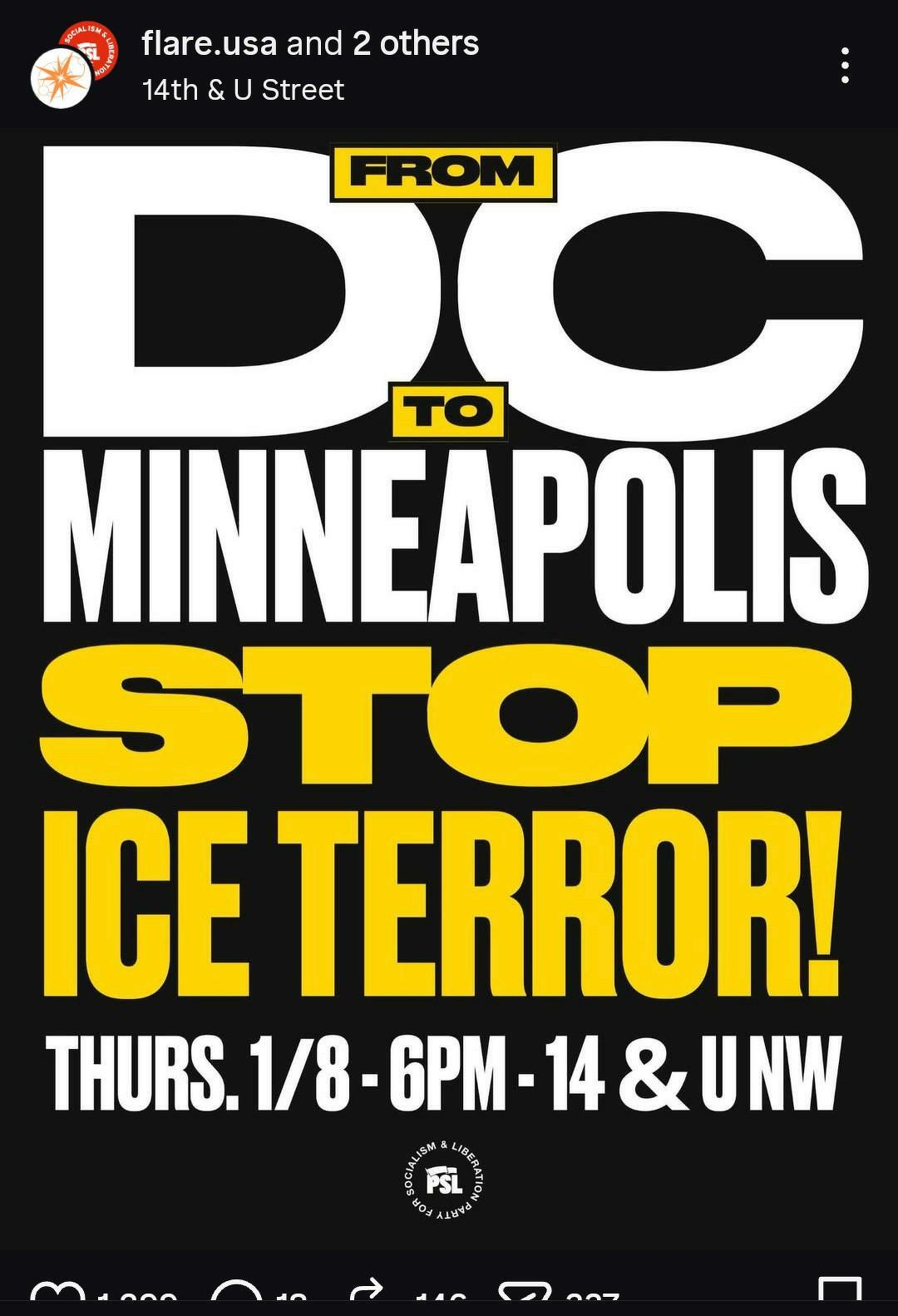 January 8, 2026 Jason Gooljar FLARE USA is organizing an action tonight on U street in DC #FuckICE #ICE