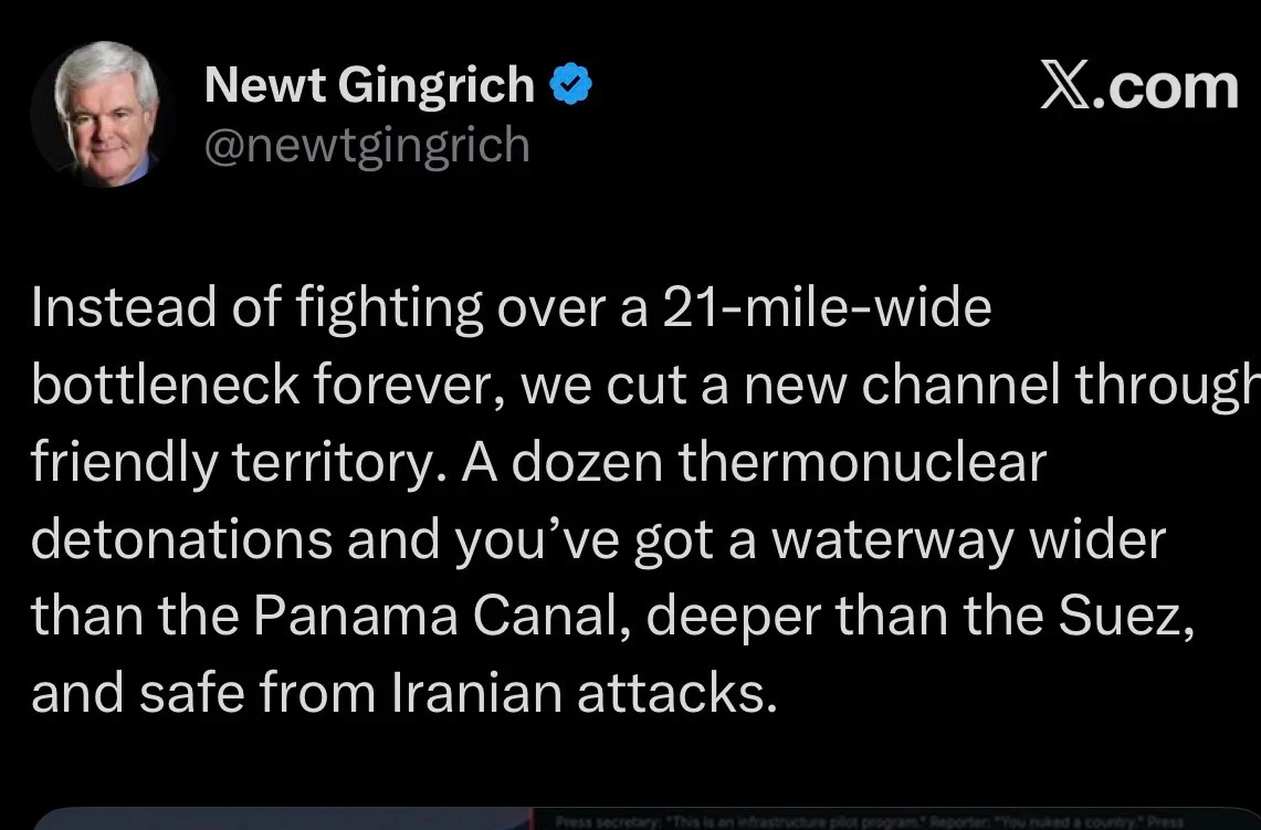 March 16, 2026 Jason Gooljar Newt Gingrich the father of the destruction of our politics which began in the 90’s with him is off his meds.